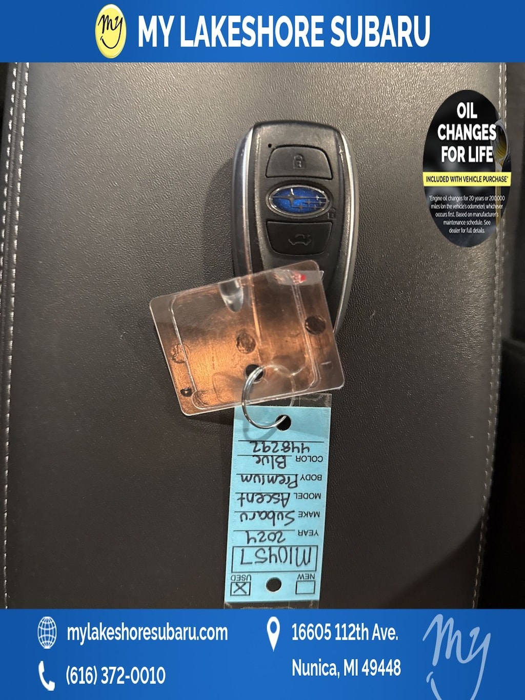 My Lakeshore Subaru is your #1 choice in Michigan to get the BEST PRICE on used vehicles and BEST value for your trade. The My Lakeshore Subaru team is ready to provide you with a world-class experience, ensuring that you find the perfect vehicle that fits all your needs. Every vehicle has been through a full safety inspection completed by certified technicians and fully detailed. We sell many makes and models, Certified Pre-owned Subaru’s and Pre-owned Vehicles with years from 2025-2024-2023-2022-2021-2020-2019-2018-2017-2016-2015-2014-2013-2012-2011-2010-2009-2008-2007 and all makes Audi, BMW, Chevrolet, Toyota, Volkswagen, Kia, Hyundai, Mazda, Mercedes, Dodge, Chrysler, Jeep, Ram, Lincoln, Honda, Subaru, and many models like Crosstrek, Outback, Forester, Accent, Legacy, WRX, BRZ, Solterra, and more. Take advantage of our VIP experience by calling 231-867-6957 to schedule a test drive. Read our customer reviews and view our entire selection of preowned vehicles at www.mylakeshoresubaru.com, or stop by today, located at 16605 112th Ave, Nunica, MI 49448. Recent Arrival! 20/26 City/Highway MPG