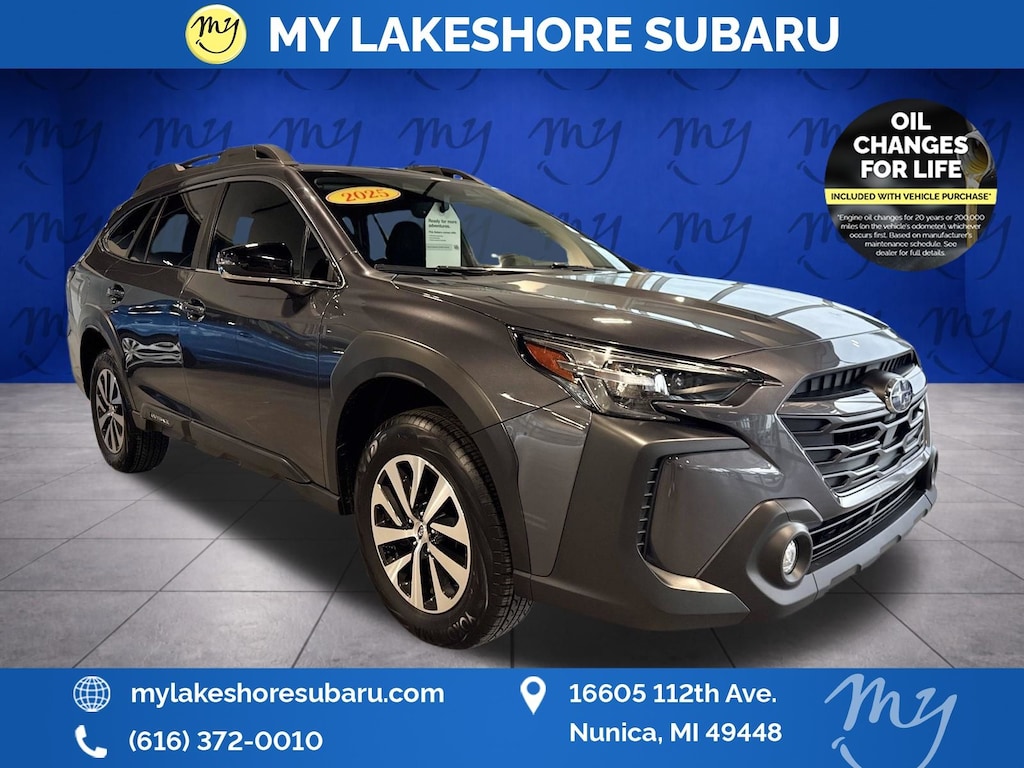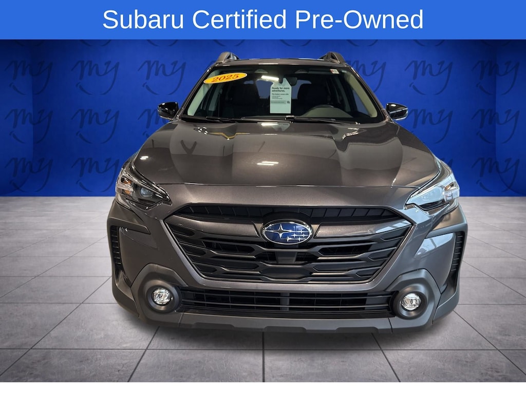 Outback Premium, Magnetite Gray Metallic, *ALL WHEEL DRIVE*, *APPLE CARPLAY & ANDROID AUTO*, *BACKUP CAMERA*, *BLIND SPOT MONITORING*, *EYESIGHT Driver Assist*, *HEATED SEATS*, *LANE DEPARTURE WARNING*, *LOCAL TRADE*, *MOONROOF*, *OIL CHANGES for LIFE*, All-Weather Floor Liners, Auto-Dimming Mirror w/Compass & HomeLink, Blind Spot Detection (BSD), BSD & RCTA & Keyless Access & Push Button Start, Hands-Free Power Rear Gate, Keyless Access w/Push Button Start, Popular Package #1A, Power Moonroof, Radio: Subaru 11.6" Multimedia System w/Navigation, Rear Bumper Cover, Rear Cross Traffic Alert (RCTA). Certified. Magnetite Gray Metallic 2025 Subaru Outback Premium AWD CVT Lineartronic 2.5L 4-Cylinder DOHC 16V