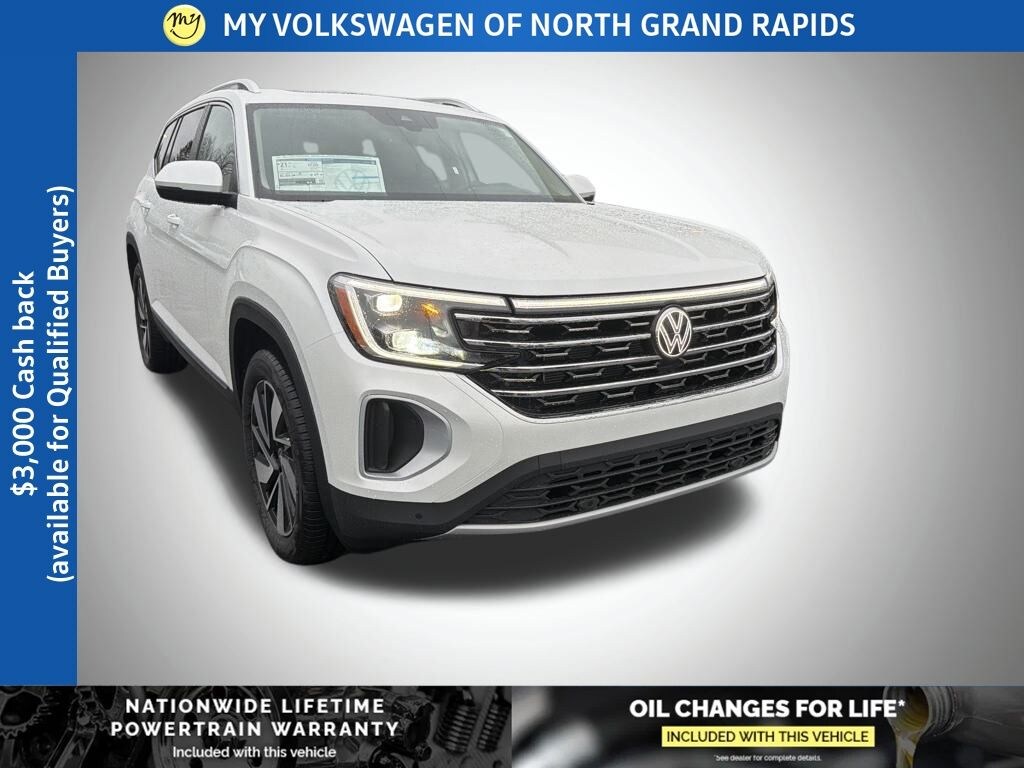 *LIFETIME POWERTRAIN* *AND LIFETIME OIL CHANGES* My Volkswagen of North Grand Rapids is your #1 choice in Michigan to get the BEST PRICE on NEW Volkswagen vehicles and BEST value for your trade. The My Volkswagen of North Grand Rapids team is ready to provide you with a world-class experience, ensuring that you find the perfect vehicle that fits all your needs. My VW of North Grand Rapids offers FREE LIFETIME OIL CHANGES and LIFETIME POWERTRAIN WARRANTY with the purchase of your New Volkswagen. My Volkswagen of North Grand Rapids offers Lifetime Oil Changes Nationwide coverage on your engine, transmission, drive train and coverage on all internally lubricating parts for as long as you own the vehicle in any state. Our lifetime nationwide warranty is set apart from most dealerships, because you can travel to any repair shop in the nation for repairs. Electric/Hybrid Models are not included in the lifetime powertrain warranty. Take advantage of our VIP experience by calling 616-361-7361 to schedule a test drive. Read our customer reviews and view our entire selection of New Volkswagen or preowned vehicles at www.myautograndrapids.com, www.myvolkswagonofnorthgrandrapids.com or stop by today, located at 3985 Plainfield Ave NE, Grand Rapids, MI 49525. 2026 Volkswagen Atlas 2.0T SEL 2.0L TSI My Auto Grand Rapids is proud to service customer's saving you time & money on any pre-owned vehicle! See dealer for complete details, dealer is not responsible for pricing errors, all prices, plus tax, title, plate, doc fees, and includes all manufacturer rebates. Serving Grand Rapids and all of our surrounding cities like Grandville, Rockford, Byron Center, Kentwood, Norton Shores, Greenville, East Grand Rapids, Holland, Ada, Northview, Jenison, Lansing, Kalamazoo, Walker, Comstock Park, Grand Haven, Holland, Wyoming, North Muskegon, Fruitport, Hudsonville, Spring Lake, Coopersville, Cedar Springs, Wayland, Battle Creek, Allendale, and anywhere in the great state of Michigan. When you purchase a vehicle from us, new or used, that is less than 10 years old and has less than 100,000 miles, and you automatically get Oil Changes For Life! Some of our used vehicles may be subject to unrepaired safety recalls. Check for a vehicle's unrepaired recalls by VIN at http://vinrcl.safercar.gov/vin/. Price includes: $3000 - Customer Bonus. Exp. 02/02/2026