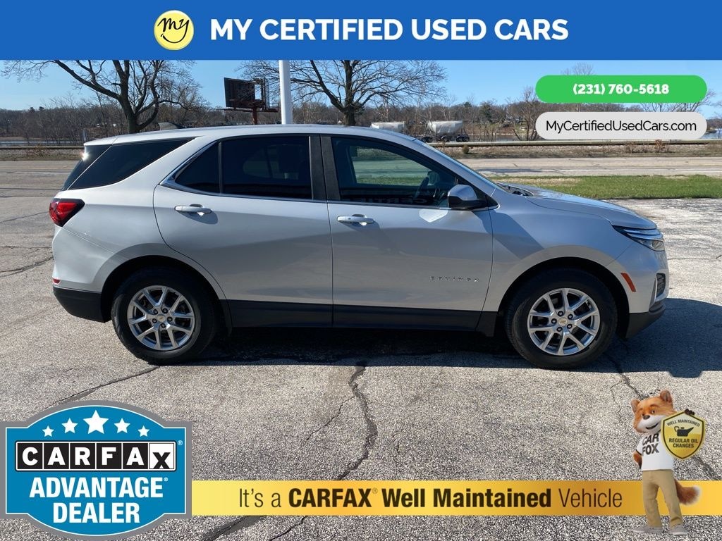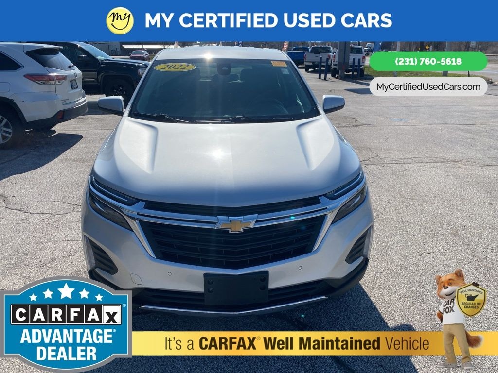 *VERY CLEAN* ***2022 CHEVROLET EQUINOX LT AWD***, *SUPER BUY* *REMOTE START* *APPLE CARPLAY & ANDROID AUTO*, *BACKUP SENSORS*, *BLIND SPOT MONITORING SYSTEM*, *LANE DEPARTURE WARNING*, *NAVIGATION*, *REARVIEW CAMERA*, 3-Spoke Leather-Wrapped Steering Wheel, Driver Convenience Package, Dual Zone Automatic Climate Control, Heated Driver & Front Passenger Seats, Preferred Equipment Group 2FL, Rear Power Liftgate, Remote Start. MY Certified Used Cars of Muskegon is your #1 choice in Michigan to get the BEST PRICE on used vehicles and BEST value for your trade. The MY Certified Used Cars team is ready to provide you with a world-class experience, ensuring that you find the perfect vehicle that fits all your needs. Every vehicle has been through a full safety inspection completed by certified technicians and fully detailed. We sell many makes and models, Pre-Owned Vehicles with years from 2025-2024-2023-2022-2021-2020-2019-2018-2017-2016-2015-2014-2013-2012-2011-2010-2009-2008-2007 and all makes Audi, BMW, Chevrolet, Nissan, Toyota, Volkswagen, Kia, Hyundai, Mercedes, Dodge, Chrysler, Jeep, Ram, Lincoln, Honda, Subaru, and many models like Bronco, Bronco Sport, Edge, Escapes, Expedition, Explorer, Fusions, Focus, Flex, F-150 Series, F-250, F-350, Super Duty Diesel Trucks, Maverick, Altima, RAV4, 4 Runner, Mustang, Ranger, Transit, Wrangler, Grand Cherokee, Grand Cherokee L, Wagoneer, Gladiator, Grand Caravan, RAM, RAM HEMI, and more. Take advantage of our VIP experience by calling 231-760-5618 to schedule a test drive. Read our customer reviews at www.mycertifiedusedcars.com/testimonials or view our entire selection of preowned vehicles at www.mycertifiedusedcars.com, or stop by today, located at 3692 Airline Rd. Muskegon, MI 49444. Silver Ice Metallic 2022 Chevrolet Equinox LT AWD 6-Speed Automatic Electronic with Overdrive 1.5L DOHC