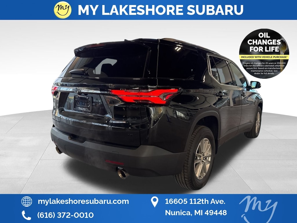 Traverse LT Leather, AWD, Mosaic Black Metallic, *ALL WHEEL DRIVE*, *APPLE CARPLAY & ANDROID AUTO*, *BLIND SPOT ALERT*, *LANE DEPARTURE WARNING*, *LEATHER HEATED POWER SEATS*, *OIL CHANGES for LIFE*. Mosaic Black Metallic 2023 Chevrolet Traverse LT Leather AWD 9-Speed Automatic 3.6L V6 SIDI VVT