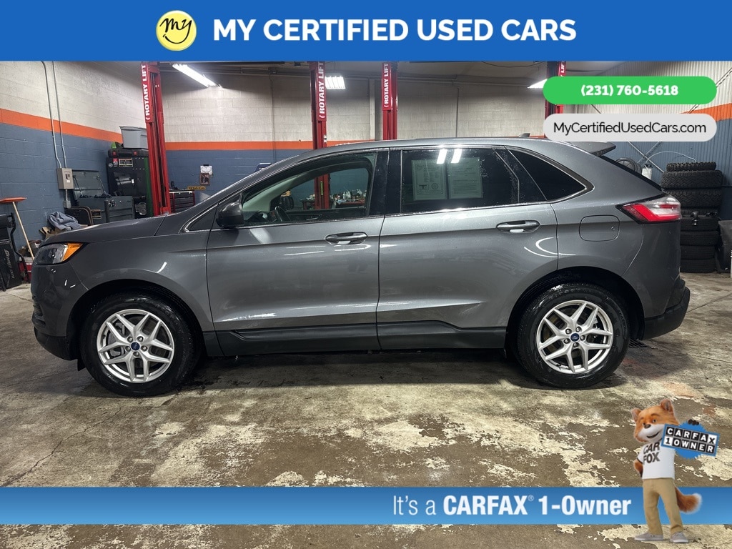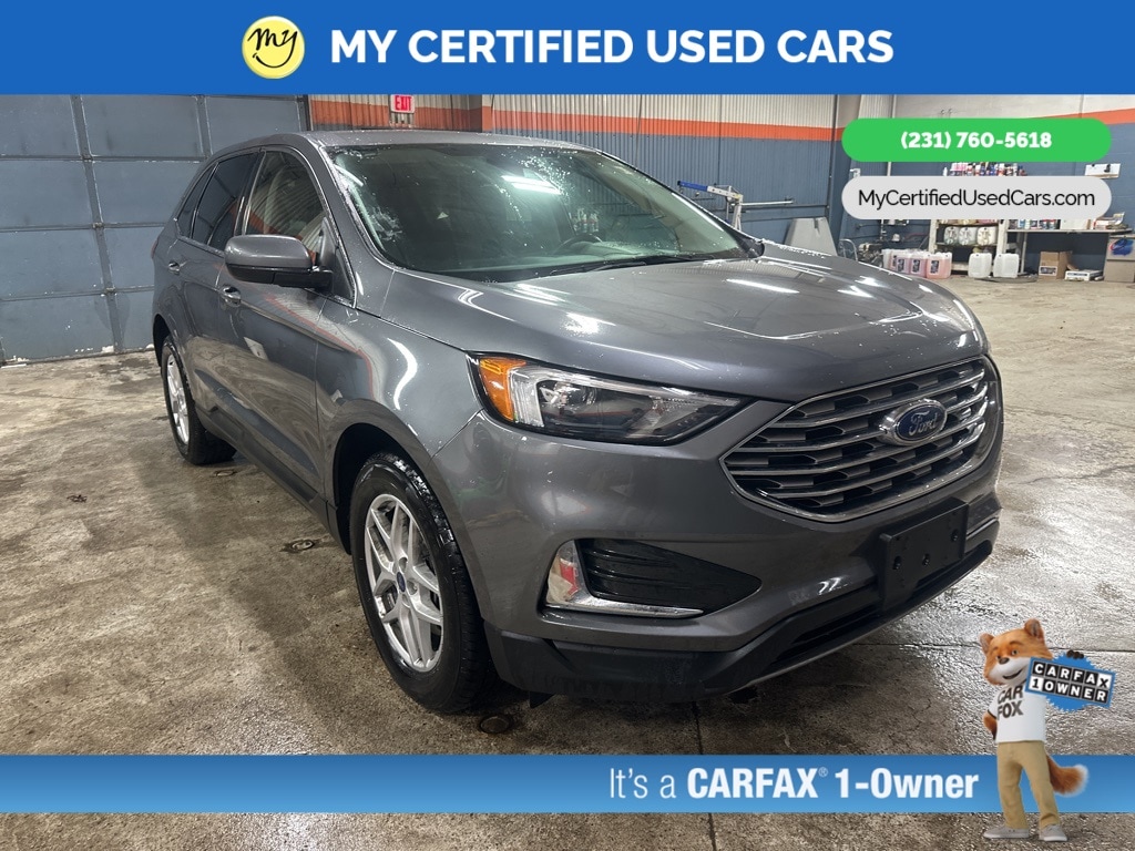 *VERY CLEAN* ***2022 FORD EDGE SEL AWD***, **NO ACCIDENTS**, **ONE OWNER**, *FULLY SERVICED* *REMOTE START* *LEATHER HEATED POWER SEATS* *NAVIGATION SYSTEM* *LANE DEPARTURE WARNING* *ADAPTIVE CRUISE*, *BLIND SPOT MONITORING SYSTEM*, *HANDSFREE BLUETOOTH*, *ADAPTIVE CRUISE*, *APPLE CARPLAY & ANDROID AUTO* , *REARVIEW CAMERA*, Connected Built-In Navigation, Equipment Group 201A, Evasive Steering Assist, Ford Co-Pilot360 Assist+, Lane Centering, Navigation System, Rear Parking Sensors. MY Certified Used Cars of Muskegon is your #1 choice in Michigan to get the BEST PRICE on used vehicles and BEST value for your trade. The MY Certified Used Cars team is ready to provide you with a world-class experience, ensuring that you find the perfect vehicle that fits all your needs. Every vehicle has been through a full safety inspection completed by certified technicians and fully detailed. We sell many makes and models, Pre-Owned Vehicles with years from 2025-2024-2023-2022-2021-2020-2019-2018-2017-2016-2015-2014-2013-2012-2011-2010-2009-2008-2007 and all makes Audi, BMW, Chevrolet, Toyota, Volkswagen, Kia, Hyundai, Mercedes, Dodge, Chrysler, Jeep, Ram, Lincoln, Honda, Subaru, and many models like Bronco, Bronco Sport, Edge, Escapes, Expedition, Explorer, Fusions, Focus, Flex, F-150 Series, F-250, F-350, Super Duty Diesel Trucks, Maverick, Mustang MACH-E, Mustang, Ranger, Transit, Wrangler, Grand Cherokee, Grand Cherokee L, Wagoneer, Gladiator, Grand Caravan, RAM, RAM HEMI, and more. Take advantage of our VIP experience by calling 231-760-5618 to schedule a test drive. Read our customer reviews at www.mycertifiedusedcars.com/testimonials or view our entire selection of preowned vehicles at www.mycertifiedusedcars.com, or stop by today, located at 3692 Airline Rd. Muskegon, MI 49444. CARFAX One-Owner. Gray Metallic 2022 Ford Edge SEL AWD 8-Speed Automatic EcoBoost 2.0L I4 GTDi DOHC Turbocharged VCT Clean CARFAX.