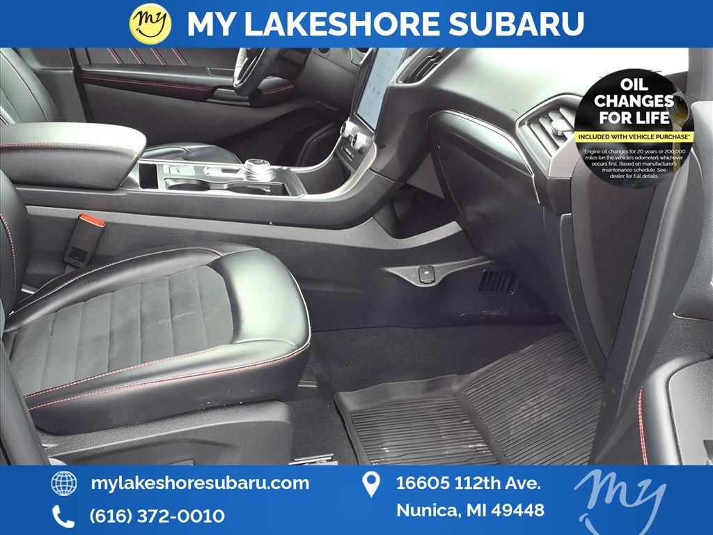 AWD, *ADAPTIVE CRUISE*, *ALL WHEEL DRIVE*, *APPLE CARPLAY & ANDROID AUTO*, *HEATED SEATS*, *LANE DEPARTURE WARNING*, *OIL CHANGES for LIFE*, ABS brakes, Adaptive Cruise Control w/Stop & Go, Alloy wheels, Compass, Connected Built-In Navigation, Electronic Stability Control, Evasive Steering Assist, Ford Co-Pilot360 Assist+, Front dual zone A/C, Heated door mirrors, Heated front seats, Illuminated entry, Lane Centering, Low tire pressure warning, Power Liftgate, Remote keyless entry, Traction control. Agate Black Metallic 2023 Ford Edge ST Line AWD 8-Speed Automatic EcoBoost 2.0L I4 GTDi DOHC Turbocharged VCT