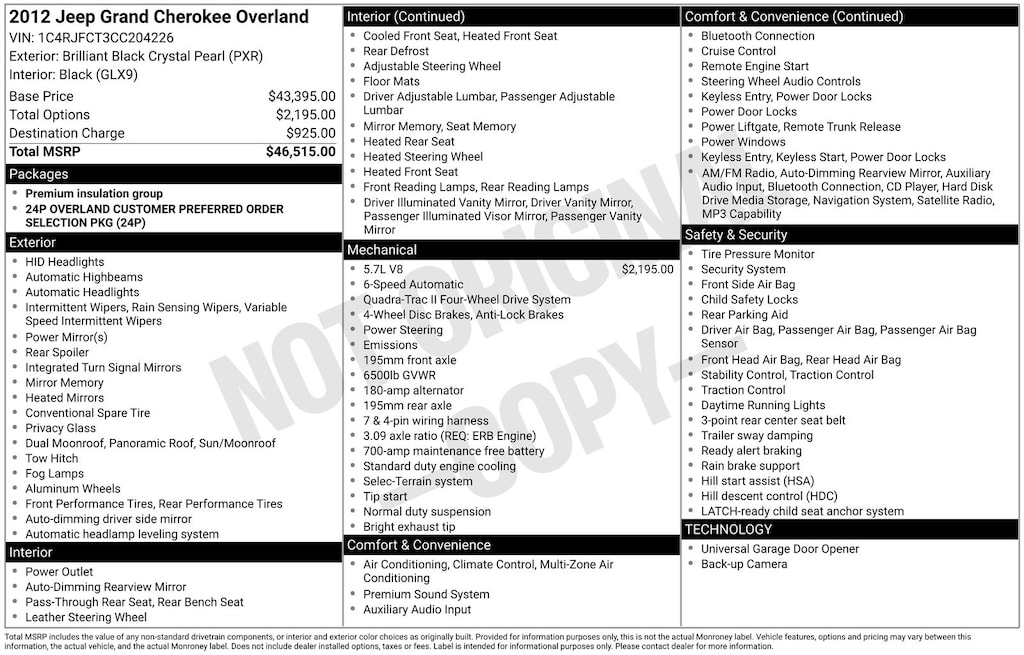 Grand Cherokee Overland, 4WD, Brilliant Black Crystal Pearlcoat, *LOCAL TRADE*. Brilliant Black Crystal Pearlcoat 2012 Jeep Grand Cherokee Overland 4WD 6-Speed Automatic 5.7L V8 Multi Displacement VVT
