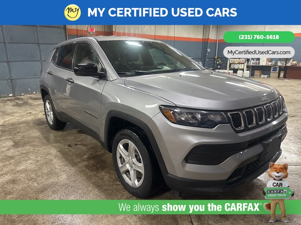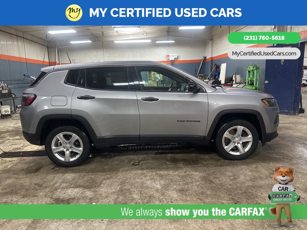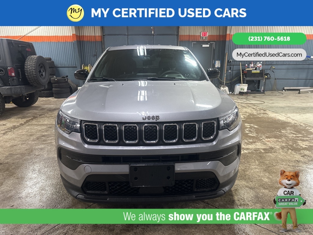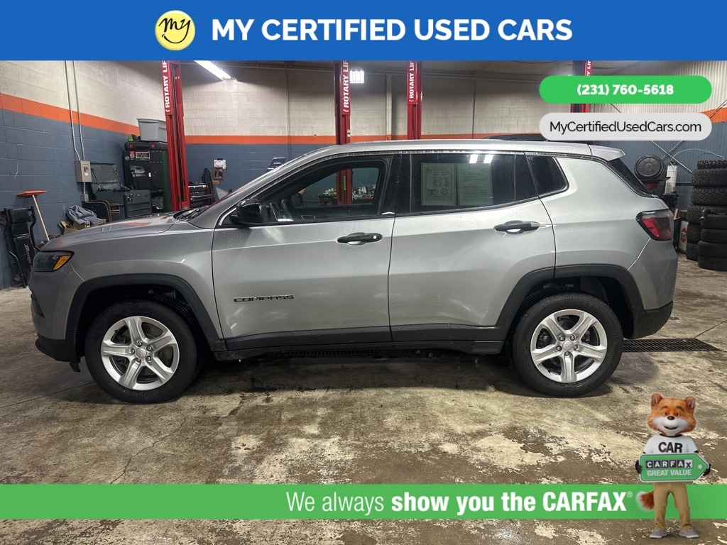*FULLY SERVICED* ***2023 JEEP COMPASS SPORT 4WD***, *VERY CLEAN* *BLIND SPOT MONITORING SYSTEM*, *LANE DEPARTURE WARNING*, *REARVIEW CAMERA*, *APPLE CARPLAY & ANDROID AUTO* *Cloth Low-Back Bucket Seats* , *ParkView Rear Back-Up Camera* , *Quick Order Package 29A* , *Radio: Uconnect 5 w/10.1" Display*. MY Certified Used Cars of Muskegon is your #1 choice in Michigan to get the BEST PRICE on used vehicles and BEST value for your trade. The MY Certified Used Cars team is ready to provide you with a world-class experience, ensuring that you find the perfect vehicle that fits all your needs. Every vehicle has been through a full safety inspection completed by certified technicians and fully detailed. We sell many makes and models, Pre-Owned Vehicles with years from 2025-2024-2023-2022-2021-2020-2019-2018-2017-2016-2015-2014-2013-2012-2011-2010-2009-2008-2007 and all makes Audi, BMW, Chevrolet, Toyota, Volkswagen, Kia, Hyundai, Mercedes, Dodge, Chrysler, Jeep, Ram, Lincoln, Honda, Subaru, and many models like Bronco, Bronco Sport, Edge, Escapes, Expedition, Explorer, Fusions, Focus, Flex, F-150 Series, F-250, F-350, Super Duty Diesel Trucks, Maverick, Mustang MACH-E, Mustang, Ranger, Transit, Wrangler, Grand Cherokee, Grand Cherokee L, Wagoneer, Gladiator, Grand Caravan, RAM, RAM HEMI, and more. Take advantage of our VIP experience by calling 231-760-5618 to schedule a test drive. Read our customer reviews at www.mycertifiedusedcars.com/testimonials or view our entire selection of preowned vehicles at www.mycertifiedusedcars.com, or stop by today, located at 3692 Airline Rd. Muskegon, MI 49444. Billet Silver Metallic Clearcoat 2023 Jeep Compass Sport 4WD 8-Speed Automatic 2.0L I4 DOHC