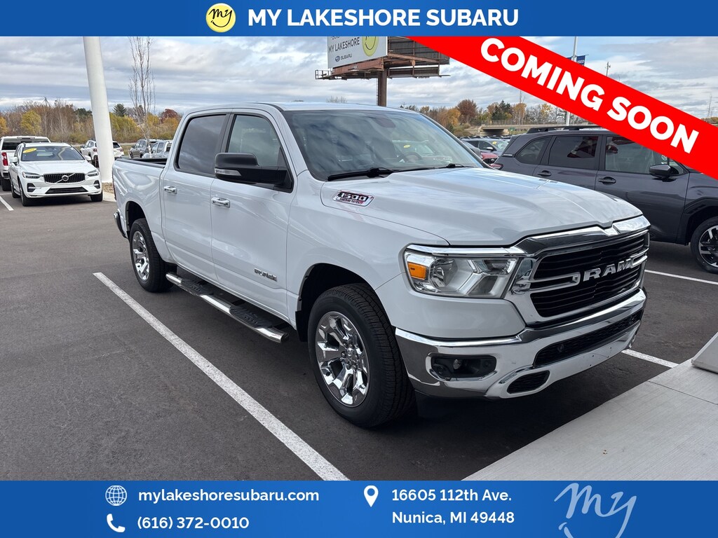 1500 Big Horn/Lone Star, HEMI 5.7L V8 Multi Displacement VVT, Bright White Clearcoat, *APPLE CARPLAY & ANDROID AUTO*, *HEATED SEATS*, *HEATED STEERING WHEEL*, *LOCAL TRADE*, *TOW PACKAGE*, 115V Auxiliary Power Outlet, 115V Auxiliary Rear Power Outlet, 2 USB Full Function/Charge Only Media Hub, 2nd Row In Floor Storage Bins, 400W Inverter, Air Conditioning ATC w/Dual Zone Control, Auto-Dimming Rear-View Mirror, Big Horn IP Badge, Big Horn Level 2 Equipment Group, Black Premium Power Mirrors, Class IV Receiver Hitch, Dampened Tailgate, Foam Bottle Insert (Door Trim Panel), Glove Box Lamp, Heated Front Seats, Heated Steering Wheel, ParkSense Front/Rear Park Assist w/Stop, Power 4-Way Driver Lumbar Adjust, Power 8-Way Driver Seat, Power Adjustable Pedals, Radio: Uconnect 4 w/8.4" Display, Rear Dome w/On/Off Switch Lamp, Rear Power Sliding Window, Rear Window Defroster, Security Alarm, SiriusXM Satellite Radio, Sun Visors w/Illuminated Vanity Mirrors, Universal Garage Door Opener. Bright White Clearcoat 2020 Ram 1500 Big Horn/Lone Star 4WD 8-Speed Automatic HEMI 5.7L V8 Multi Displacement VVT