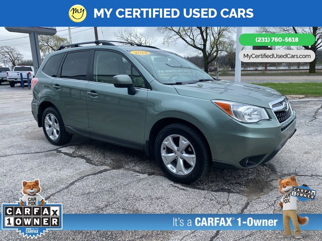 MY Certified Used Cars of Muskegon is your #1 choice in Michigan to get the BEST PRICE on used vehicles and BEST value for your trade. The MY Certified Used Cars team is ready to provide you with a world-class experience, ensuring that you find the perfect vehicle that fits all your needs. Every vehicle has been through a full safety inspection completed by certified technicians and fully detailed. We sell many makes and models, Pre-Owned Vehicles with years from 2025-2024-2023-2022-2021-2020-2019-2018-2017-2016-2015-2014-2013-2012-2011-2010-2009-2008-2007 and all makes Audi, BMW, Chevrolet, Nissan, Toyota, Volkswagen, Kia, Hyundai, Mercedes, Dodge, Chrysler, Jeep, Ram, Lincoln, Honda, Subaru, and many models like Bronco, Bronco Sport, Edge, Escapes, Expedition, Explorer, Fusions, Focus, Flex, F-150 Series, F-250, F-350, Super Duty Diesel Trucks, Maverick, Altima, RAV4, 4 Runner, Mustang, Ranger, Transit, Wrangler, Grand Cherokee, Grand Cherokee L, Wagoneer, Gladiator, Grand Caravan, RAM, RAM HEMI, and more. Take advantage of our VIP experience by calling 231-760-5618 to schedule a test drive. Read our customer reviews at www.mycertifiedusedcars.com/testimonials or view our entire selection of preowned vehicles at www.mycertifiedusedcars.com, or stop by today, located at 3692 Airline Rd. Muskegon, MI 49444. CARFAX One-Owner. Jasmine Green Metallic 2014 Subaru Forester 2.5i Limited AWD Lineartronic CVT 2.5L 4-Cylinder DOHC 16V VVT Clean CARFAX.