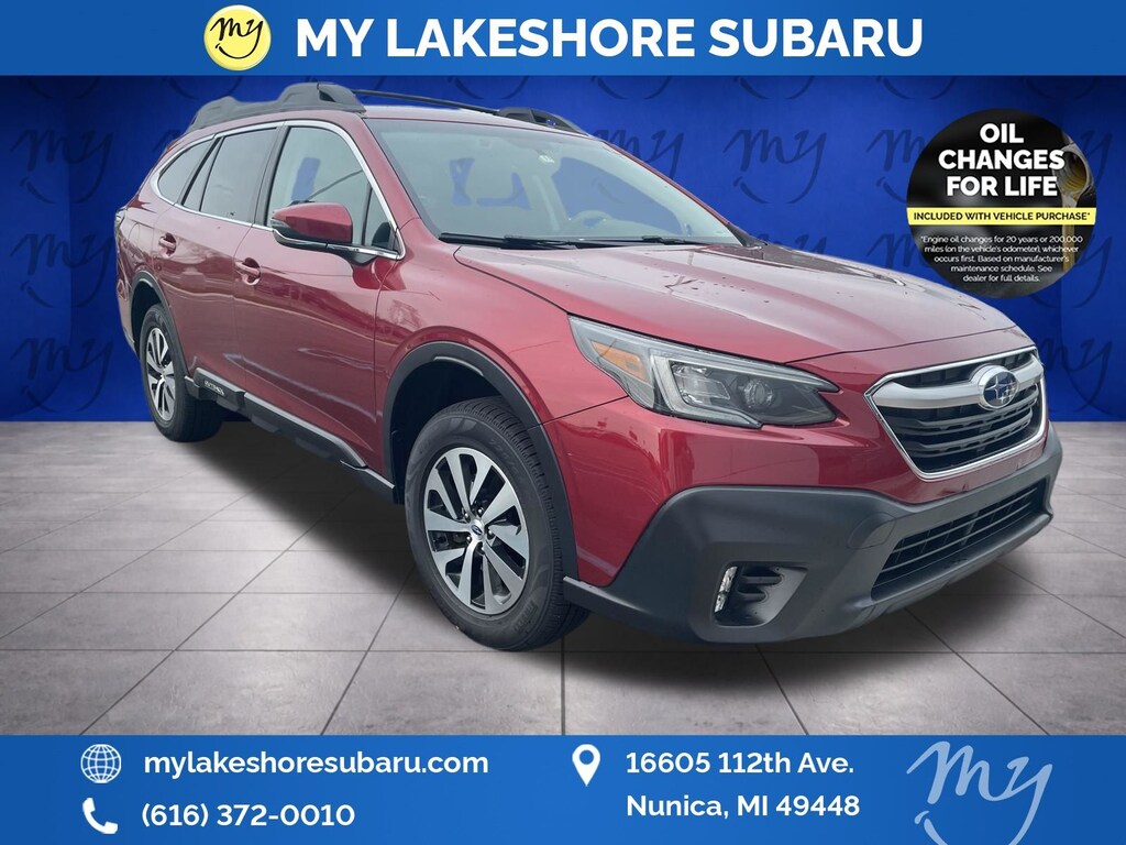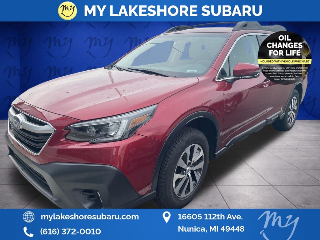 Outback Premium, Crimson Red Pearl, *ALL WHEEL DRIVE*, *APPLE CARPLAY & ANDROID AUTO*, *BACKUP CAMERA*, *BLIND SPOT MONITORING*, *LANE DEPARTURE WARNING*, *LOCAL TRADE*, *OIL CHANGES for LIFE*, All-Weather Floor Liners, Auto-Dimming Exterior Mirror w/Approach Light, Auto-Dimming Mirror w/Compass & HomeLink, Blind Spot Detection (BSD), BSD w/RCTA & Keyless Access & Push Button Start, Dome Light LED Upgrade, Hands-Free Power Rear Gate, Keyless Access w/Push Button Start, Popular Package #1, Rear Bumper Cover, Rear Cross Traffic Alert (RCTA). Crimson Red Pearl 2021 Subaru Outback Premium AWD CVT Lineartronic 2.5L 4-Cylinder DOHC 16V