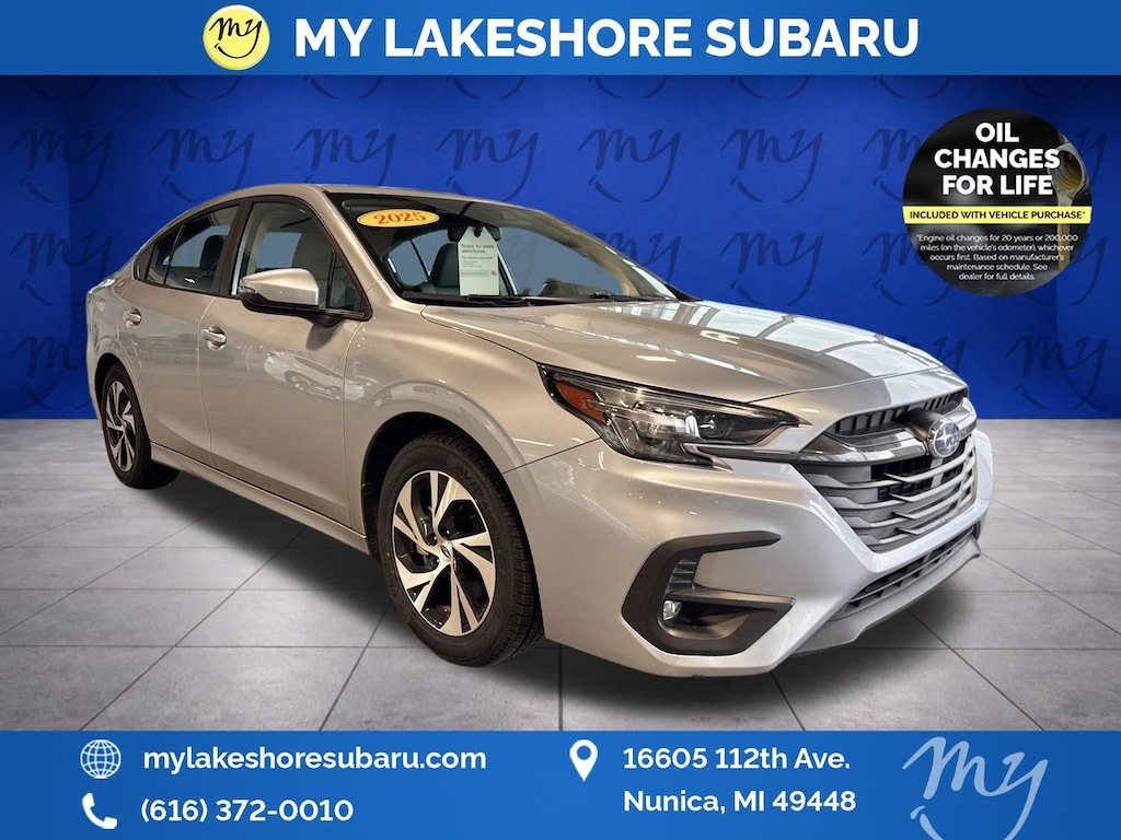 Legacy Premium, Ice Silver Metallic, *ALL WHEEL DRIVE*, *APPLE CARPLAY & ANDROID AUTO*, *BACKUP CAMERA*, *BLIND SPOT MONITORING*, *EYESIGHT Driver Assist*, *HEATED SEATS*, *LANE DEPARTURE WARNING*, *OIL CHANGES for LIFE*. Certified. Ice Silver Metallic 2025 Subaru Legacy Premium AWD Lineartronic CVT 2.5L 4-Cylinder DOHC 16V